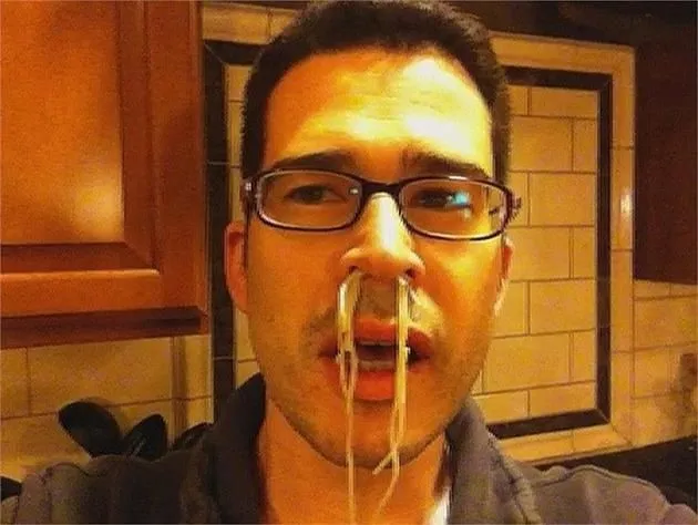 12. Самая длинная нить спагетти в носу
