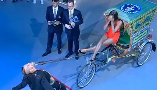 25 апреля 2009 года Чейн Халтгрен из Австралии потянул одними своими глазницами рикшу весом в 411,65 кг. Для этого он установил в глазницы рыболовные крючки. Рекорд он установил на итальянском телешоу.