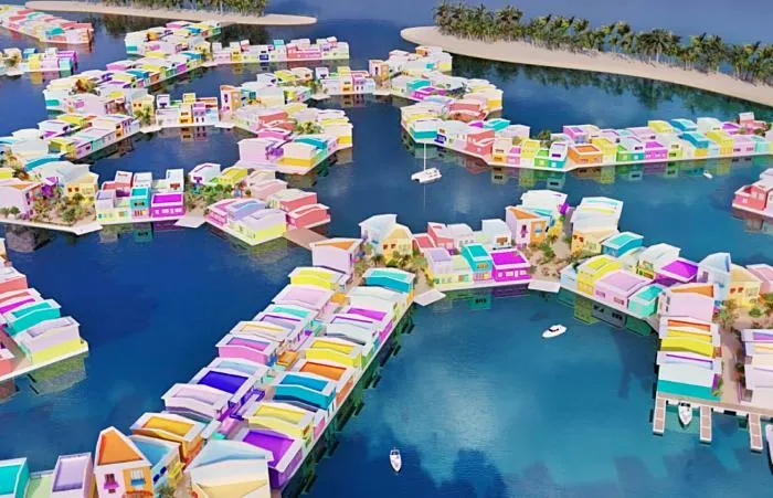 Между зданиями предусмотрены каналы, на которых можно будет перемещаться на лодках. Вокруг плавучих конструкций создадут кольцо из естественных и искусственных островов. Они станут своеобразной стеной, которая защитит платформы от волн.