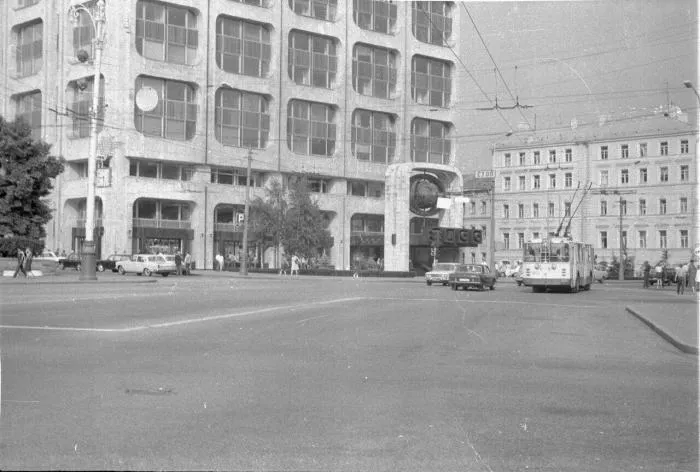 Кажется, Лужкова модно ругать за бесконечные вереницы различных ларьков по всей территории столицы. Однако как мы видим начал это совсем не он. Уже при советской власти ларьки встречались в самых неожиданных местах. Игрушки, сувениры, Союзпечать и мороженое.