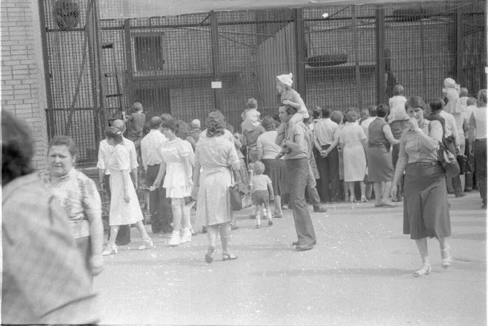 Впрочем, всё это не так уж и важно. Куда важнее то, что человек не пожалел потратить драгоценную плёнку на кадры спального района. Обратите внимание, что припаркованных машин нет вообще. Как-то незаметно они стали частью окружающего мира, хотя ещё недавно всё было иначе.