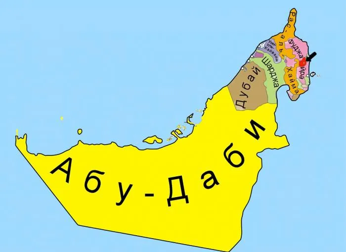 ОАЭ и Оман на карте. На севере анклав Омана, а центре – государство в государстве...