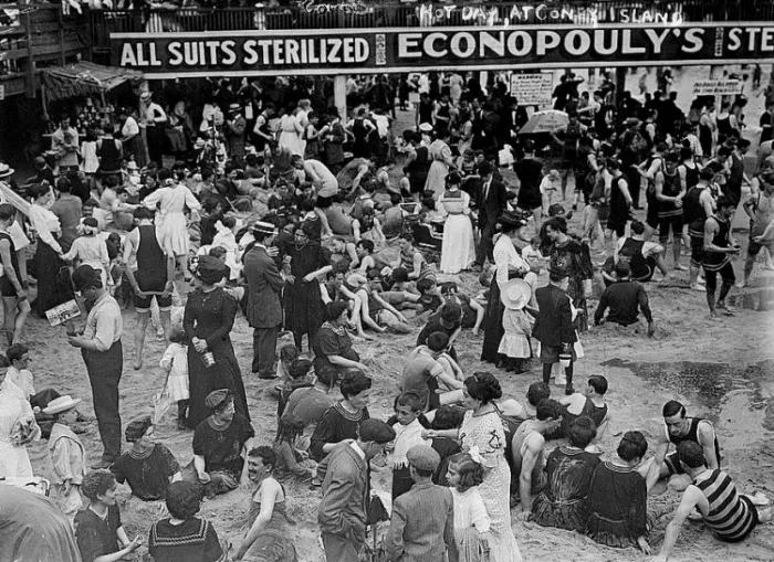 Но это пригород. А что в центре? Как там дела? Там было ещё хуже. Все пляжи и бассейны были переполнены жителями, многие из людей спали на пожарных лестницах во время жарких ночей. Некоторые даже вылазили на крышу. В начале XX века правительство Нью-Йорка наконец-то додумалось до того, чтобы разрешить людям ночевать на улицах. А вот в конце XIX века это было запрещено, и тесные комнаты, в которых набивалось по пять — шесть человек. Добавьте сюда исключительную целомудренность в одежде (никаких шорт и мини-юбок) и получите адок. Асфальт, бетон, высокие дома. Кое-где открывались купальни, но водичка в них была такой себе. Да и выбор между смертью от жары или от какой-то загадочной болезни был довольно сложным. А вот если у вас были деньги, то выбор был гораздо проще — практически все богатые районы в городах США на летние месяцы буквально становились пустыней. Там не только было жарко, но и пусто — всё кредитоспособное население обычно переезжало из душных бетонных джунглей на побережье, в отели и частные домики, выкупленные на всё лето. У воды хотя бы было прохладно, можно было купаться и вести здоровый образ жизни. А ближе к осени они возвращались в город, чтобы продолжить работу по зарабатыванию денег на домик к следующему лету.