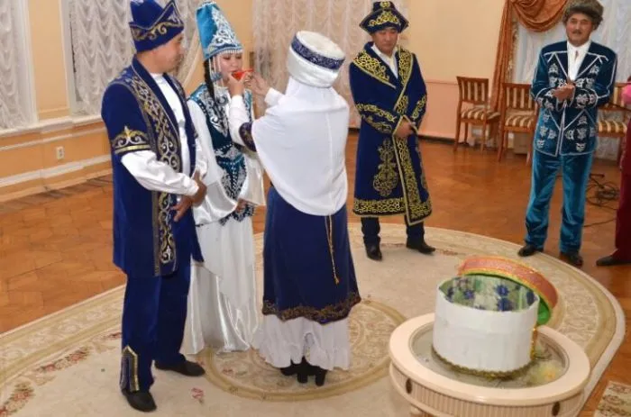 По ходу свадебной церемонии казахи уделяли особое внимание двух основным стихиям – огню и воде. С помощью огня (конечно же, не в чистом виде) матери женихов благословляли своих будущих невесток. Женщины нагревали ладони над открытым огнем, а затем водили ими по лицу невесты, тем самым отгоняя от нее злых духов.