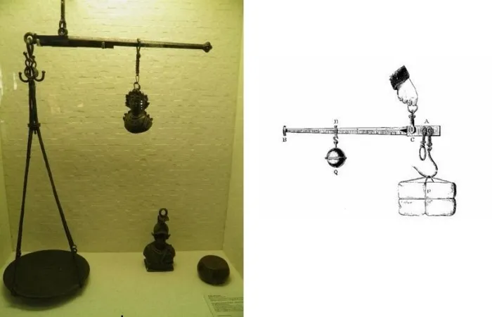 Обратите внимание на весы-безмен с правого края: весы с противовесом, двигающимся на рычаге. Очень компактные и удобные. Вот вам древнеримские весы из археологическогомузея Неаполя и вполне современный вариант (начала ХХ века), не слишком отличный от римских весов на рельефе.