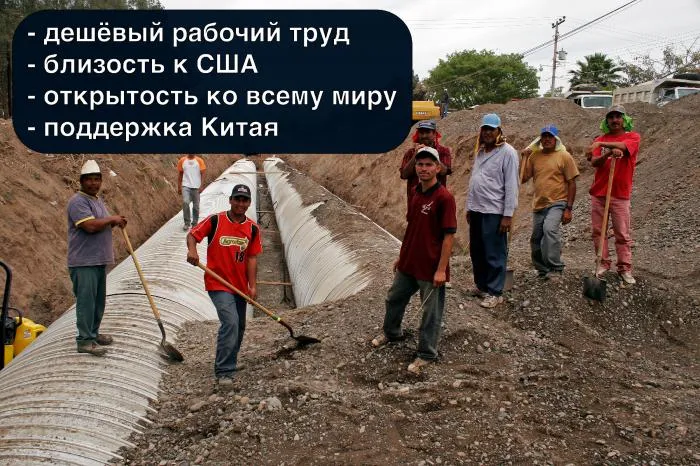 Иностранцы отстраивают в Мексике заводы и транспортную инфраструктуру. Считается, в ближайшие десятилетия в страну переедут крупнейшие производители промышленных товаров, а дешёвый и при этом качественный труд мексиканцев станет главным драйвером экономики региона.