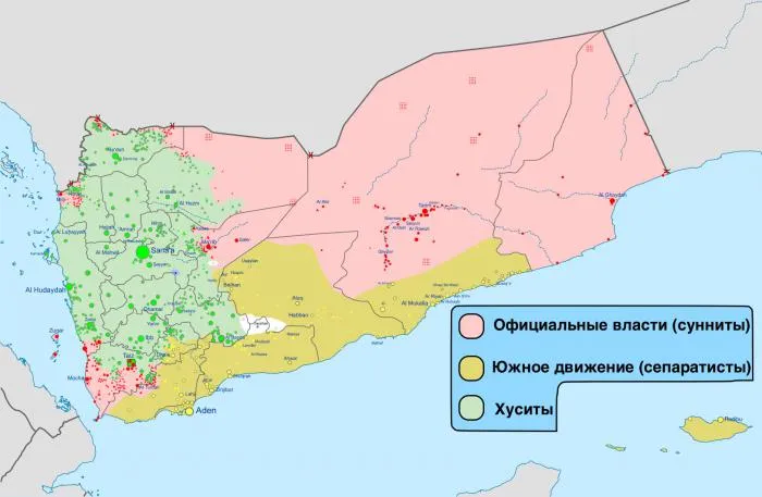 Хуситов поддерживает Иран – главный геополитический соперник Саудовской Аравии. Суннитам помогают саудовцы и американцы. На юге действуют ещё и сепаратисты – они стремятся вернуть независимость Южного Йемена, существовавшего до 1990 года.