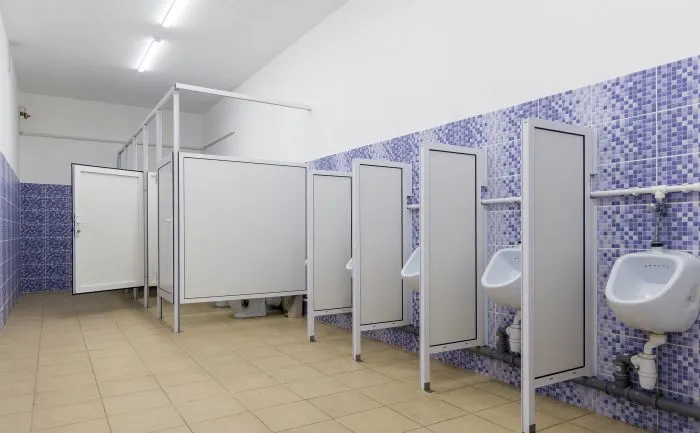 Во многих общественных туалетах есть зазор между дверью и полом. Это сделано для того, чтобы не было конфиденциальности, уединения, и люди быстрее освобождали туалет. Ну а ещё его легче убрать, если возникает непредвиденная ситуация.
