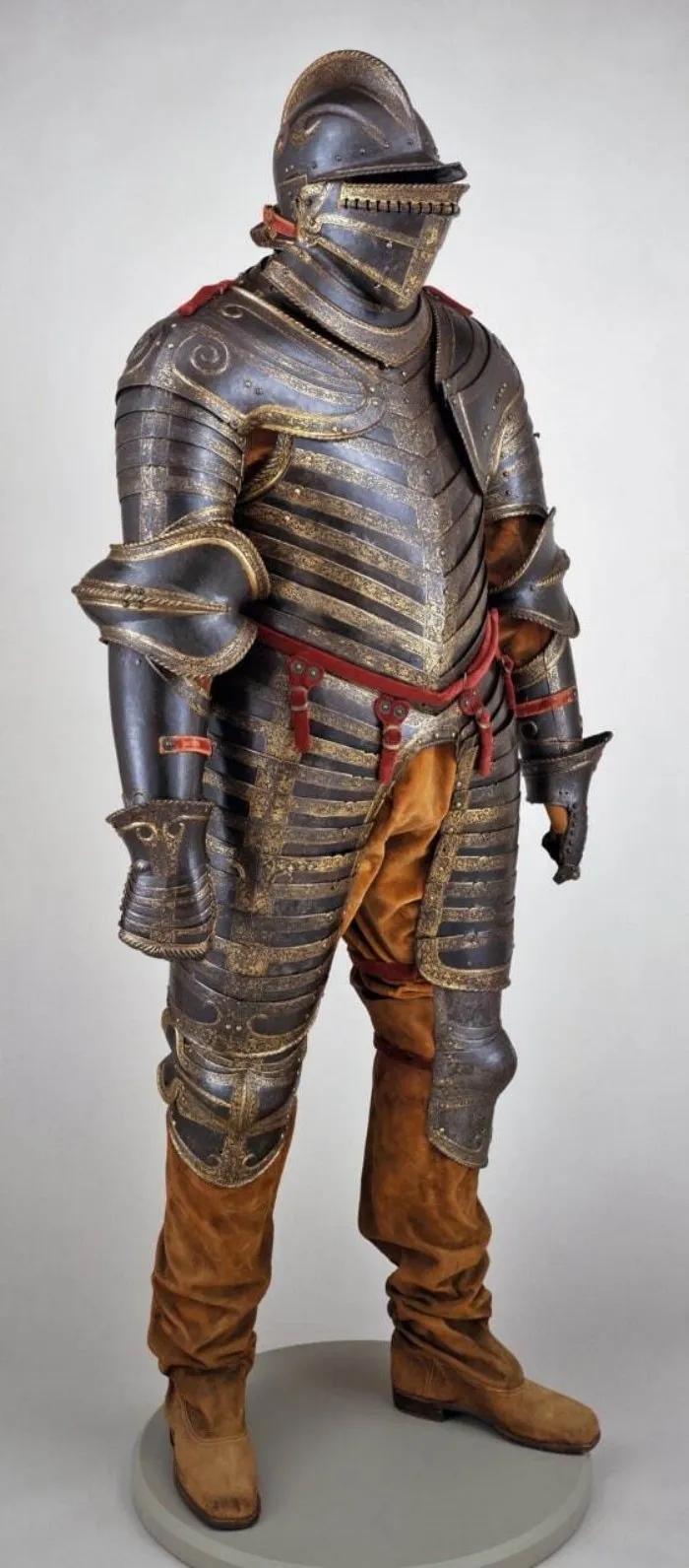 Боевой доспех Генриха VIII, короля Англии. Доспех был сделан на момент, когда король страдал подагрой и избыточным весом (в районе 180 кг). ~1544 год.