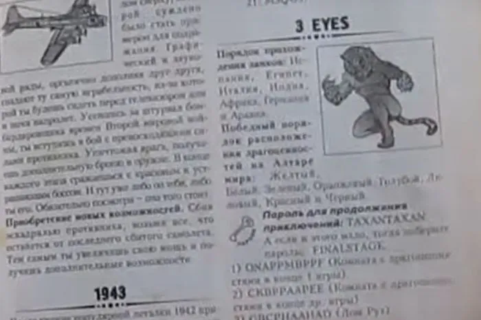 Но и это еще не все. Чтобы добавить массовости, хитрые авторы книги пихали одну и ту же игру 2 раза. Но в одном случае игра имела артикль The, а в другое уже нет. То есть, на букву L мы могли найти игру "Lion king", а на букву Т - "The lion king". Хотя, это была одна и та же игра.Во всех этих случаях авторы просто отсылали читателя на оригинал. Например, если зайти на ту же игру "Lion King" мы могли обнаружить лишь ссылку "Смотрите игру "The Lion King".Да и на самом деле в книжке было заявлено не 5000, 7000 или 9000 игр, а 9000 описаний и паролей к играм. То есть одна игра могла включать в себя как пароли, так и описание с секретами. Хитрый ход, тем более, что многие видели огромную цифры 7000, а остальное даже не читали, наивно полагая, что речь идет именно о количестве игр.