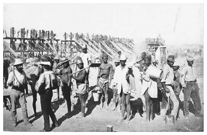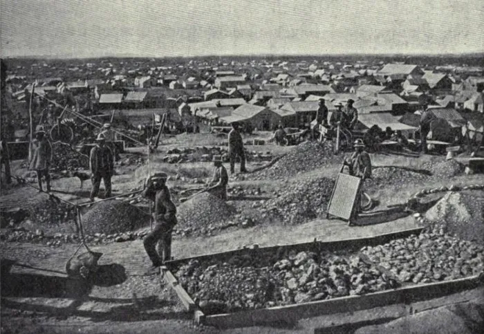 Однако в те времена мало кто мог бы предположить, что новому городу будет уготована такая долгая история существования и процветания. Дело в том, что до открытия южноафриканских месторождений все алмазы мира добывались из россыпей, а коренные месторождения были неизвестны вообще, за исключением нескольких разработок в Индии, и то сами индусы узнали об этом только в двадцатом веке от появившихся там европейских геологов. Чем вообще россыпи полезных ископаемых отличаются от их коренного залегания? Чтобы не вдаваться в геологические дебри, приведу простой и понятный пример. Вот, допустим, вы решили приготовить гороховую кашу, подошли к кухонному шкафу, достали с полки пакет с горохом и он случайно выскользнул у вас из рук и упал на пол. Горошины раскатились по полу тонким слоем и вы, ругая собственную криворукость (ну или воздавая хвалу Господу за посланное испытание - смотря у кого какая жизненная парадигма), за пять минут собираете этот тонкий слой обратно в пакет. Это и есть добыча из россыпей, а те несколько горошин, которые в процессе формирования залежи закатились под холодильник - это россыпь с трудноизвлекаемыми запасами, которые могут быть добыты только попутно с каким-то другим процессом, например, покупкой нового холодильника.