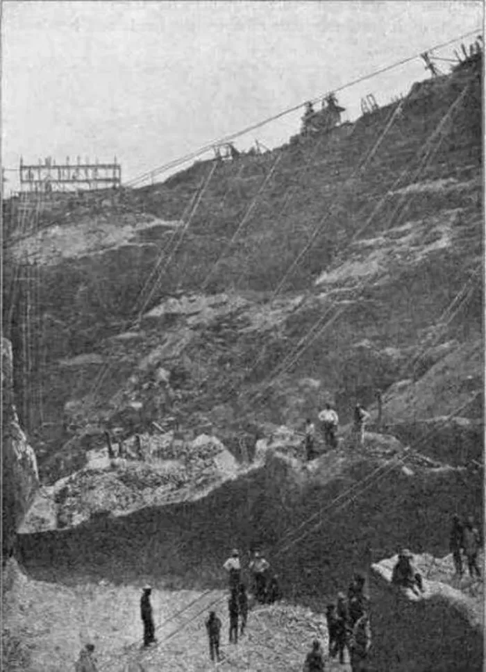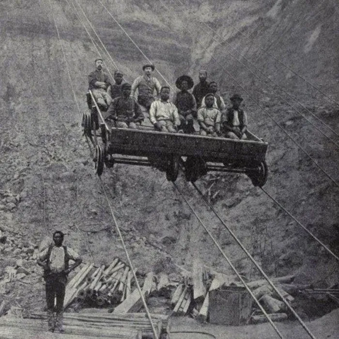 Однако бородатые южноафриканские мужики, верные принципу «бери больше, кидай дальше, отдыхай, пока летит», меньше всего на свете волновались по поводу прорывов в геологии. Куда больше их заботили другие прорывы и обвалы: с увеличением глубины карьера транспортировочные дорожки постепенно осыпались, обрушивались и в итоге были срыты до уровня горной разработки, из-за чего перед старателями встала проблема, как попасть на свою делянку и вывезти с нее руду, не залезая на чужие огороды участки. Сначала на краю карьера устроили отдельные лебедки с канатными дорогами до дна ямы.