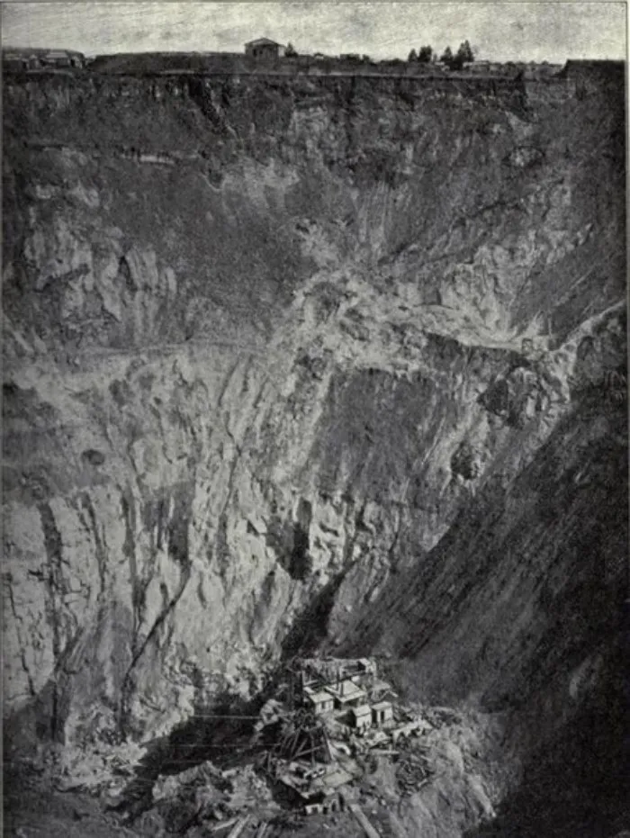 Карьер Кимберли в 1889 году незадолго перед прекращением открытой разработки.