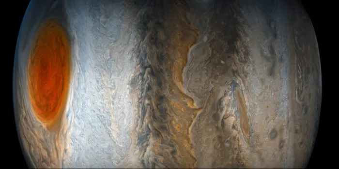 Представьте, какое бы вас ожидало зрелище в иллюминаторах космического корабля. Взглянуть на водородные вихри гигантской планеты не с орбиты, а вблизи — здорово, правда?