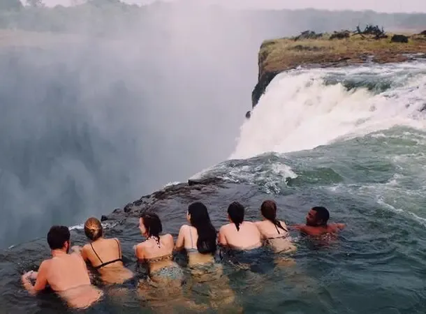"Купель дьявола" — естественная скальная выемка в верхней точке водопада Виктория, вымытая водой за тысячи лет. Место получило такое название, потому что она находится в нескольких метрах от крутого обрыва. К сожалению, некоторых смельчаков часто уносит к обрыву, и они оказываются у подножия водопада. В таком случае даже спасателям затем сложно достать их тела.