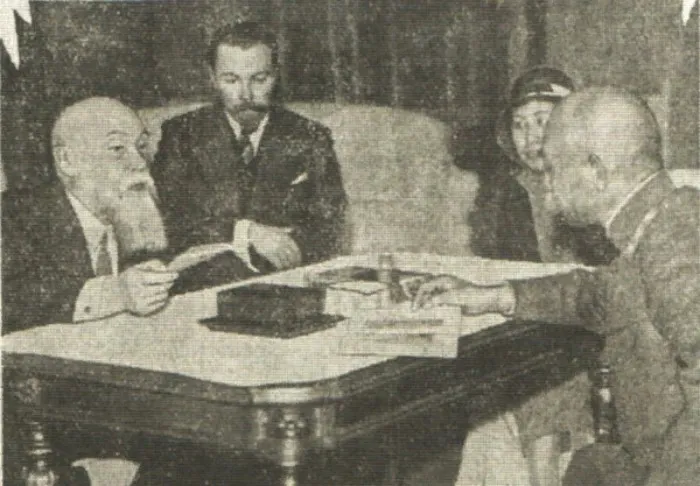 Николай Рерих с сыном Юрием во время встречи с военным министром Японии Хаяси. Токио. Май 1934 г.