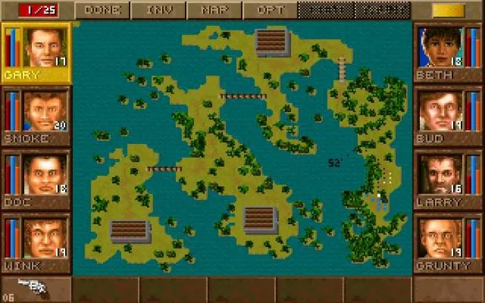 В Jagged Alliance не давали скучать не только противники, но и сам остров. Во-первых, присутствовало ощущение возможности влиять на среду. Воронка от гранаты оставалась навсегда, до конца игры. Во-вторых, игрока поджидала масса неприятных сюрпризов, главным образом - в воде. Уставший солдат мог элементарно утонуть, а входить в реку без ножа вообще чревато - какая-нибудь змея могла запросто утащить персонажа на дно.