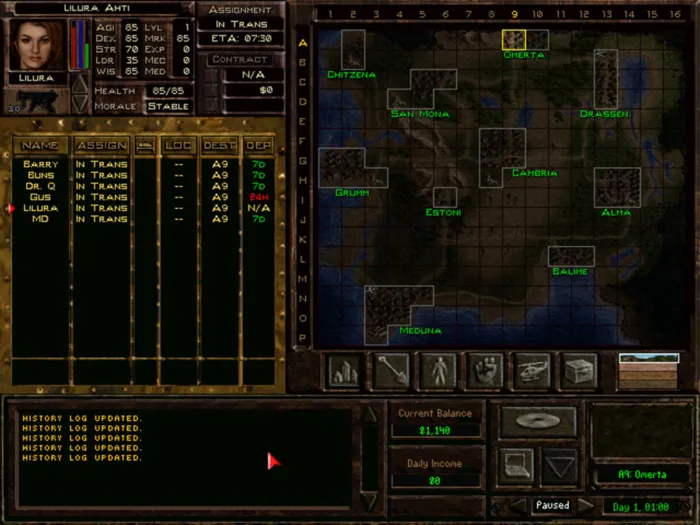 Разумеется, главная составляющая Jagged Alliance - это формирование команды. И это именно то, за что мы полюбили эту игру! Каждый наемник имеет свои характеристики, свою биографию, свой характер, свой набор умений. Один боится воды, другой отличный механик, третий - врач. Уже на этом этапе, создания команды, встает задача сформировать сбалансированный отряд, способный решить широкий спектр задач!