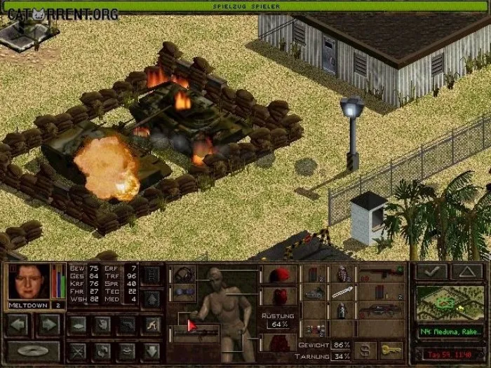 Вот она - основная изюминка игры, делающая Горький-17 незабываемым! Все интеллектуальные задачи, про бедность которых я говорил выше, сосредоточенны именно в боях. Добиться такого расположения своих и чужих юнитов, чтобы одним выстрелом нанести максимальный урон, но, при этом, не задеть своих!
