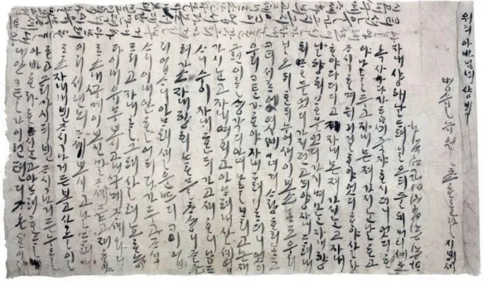 Это душераздирающее письмо, написанное в 1586 году, найдено в гробнице в корейском городе Андон-си, на груди у мумми человека, скончавшегося в том же году. Оно было написано беременной вдовой усопшего.