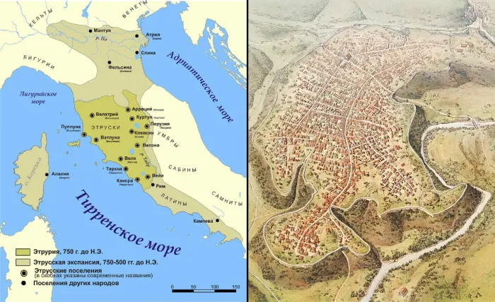Цивилизация этрусков развивалась одновременно с Древней (Архаической) Грецией и во многом была на неё похожа. Этруски жили в городах-государствах, объединенных в союзы.