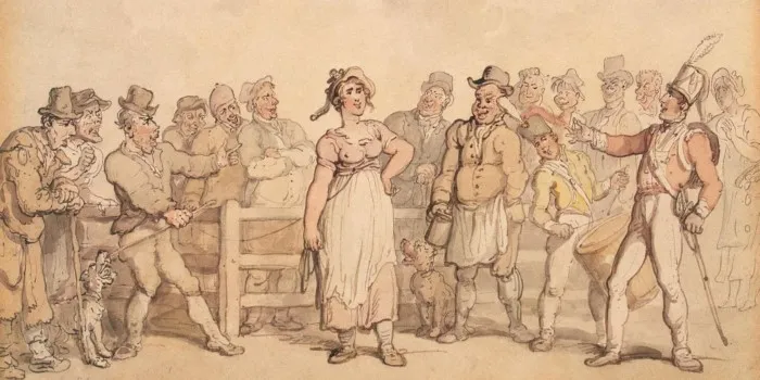 Продажа женщины. Иллюстрация Томаса Роулендсона, 1812–1814 годы