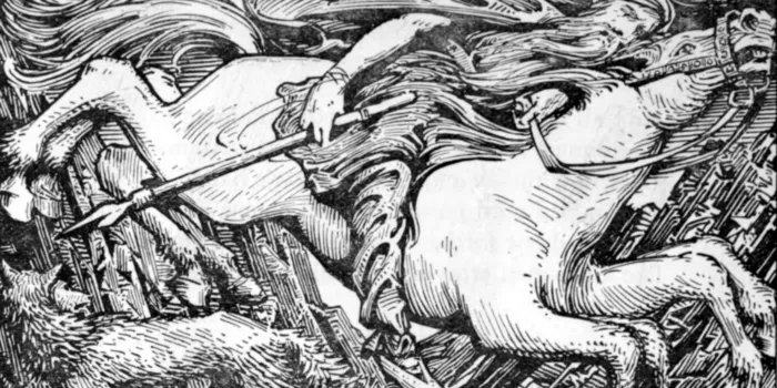 Локи в облике кобылы соблазняет Свадильфари. Картина Дороти Харди, 1909 год