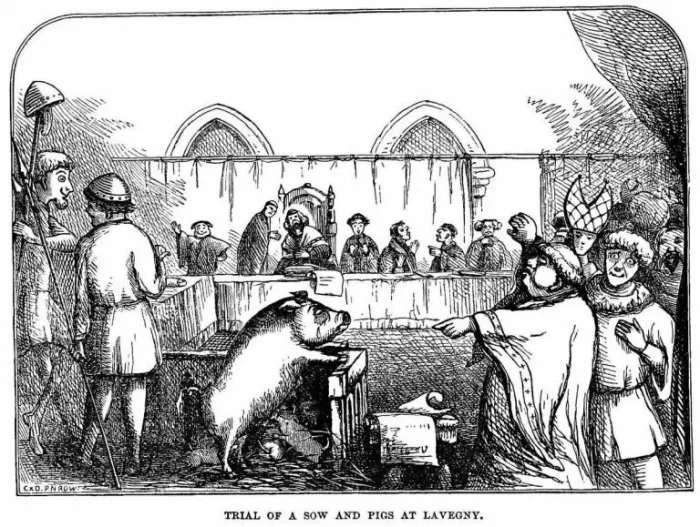В Средневековой Европе перед судом могли предстать не только люди, но и животные, если их уличали в нарушении закона. Начиная с коров, свиней, собак и заканчивая насекомыми. Всех их тащили в суд, при этом даже соблюдая все необходимые формальности, а в случае доказательства их вины выносили приговоры по всей строгости законов того времени.