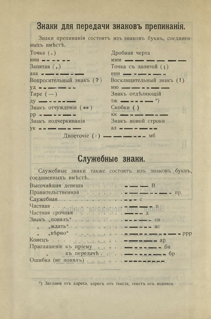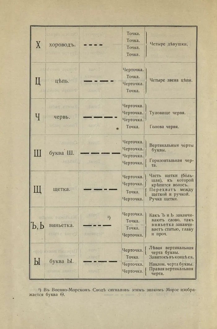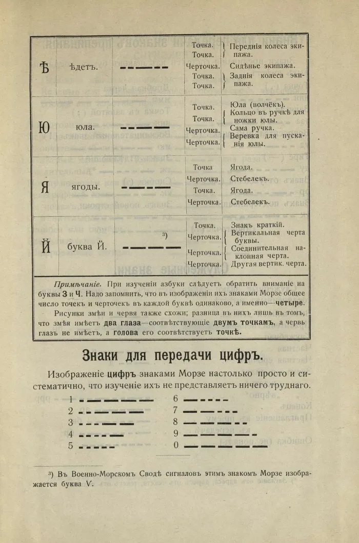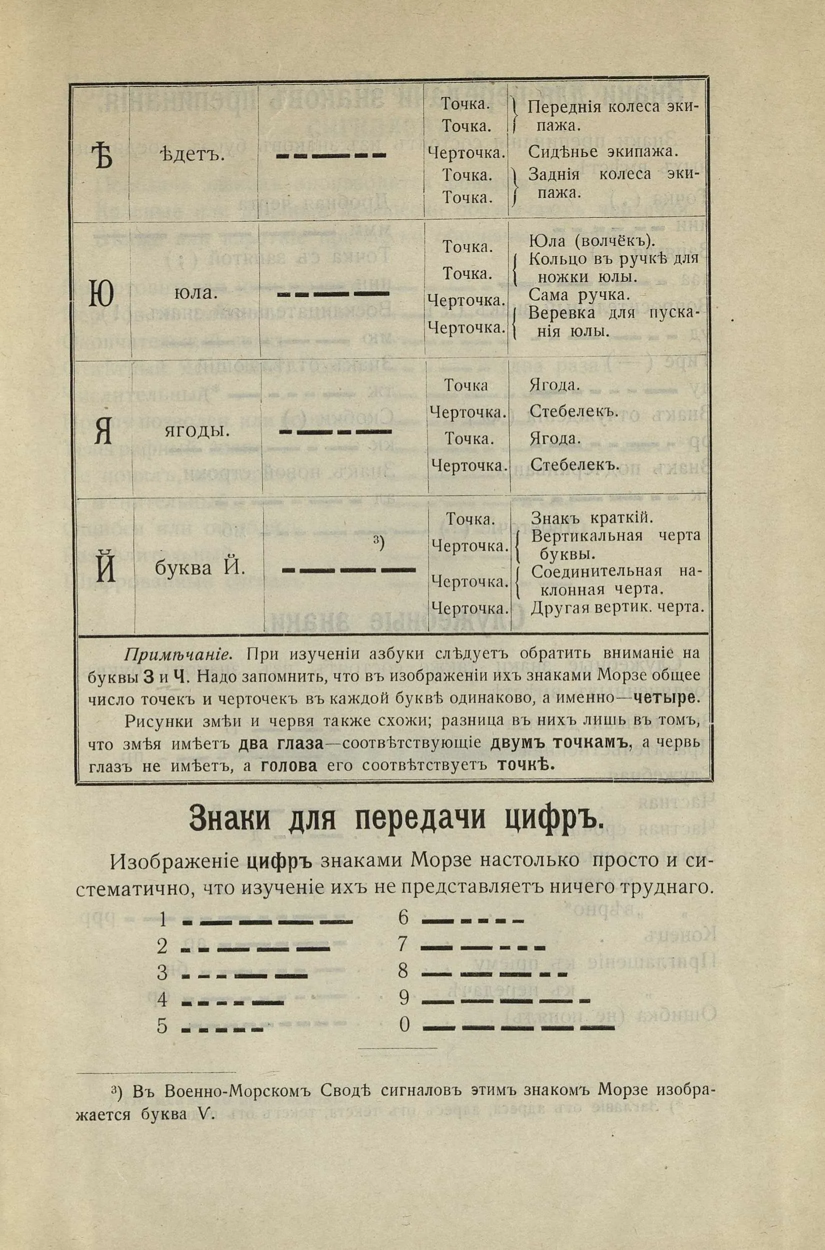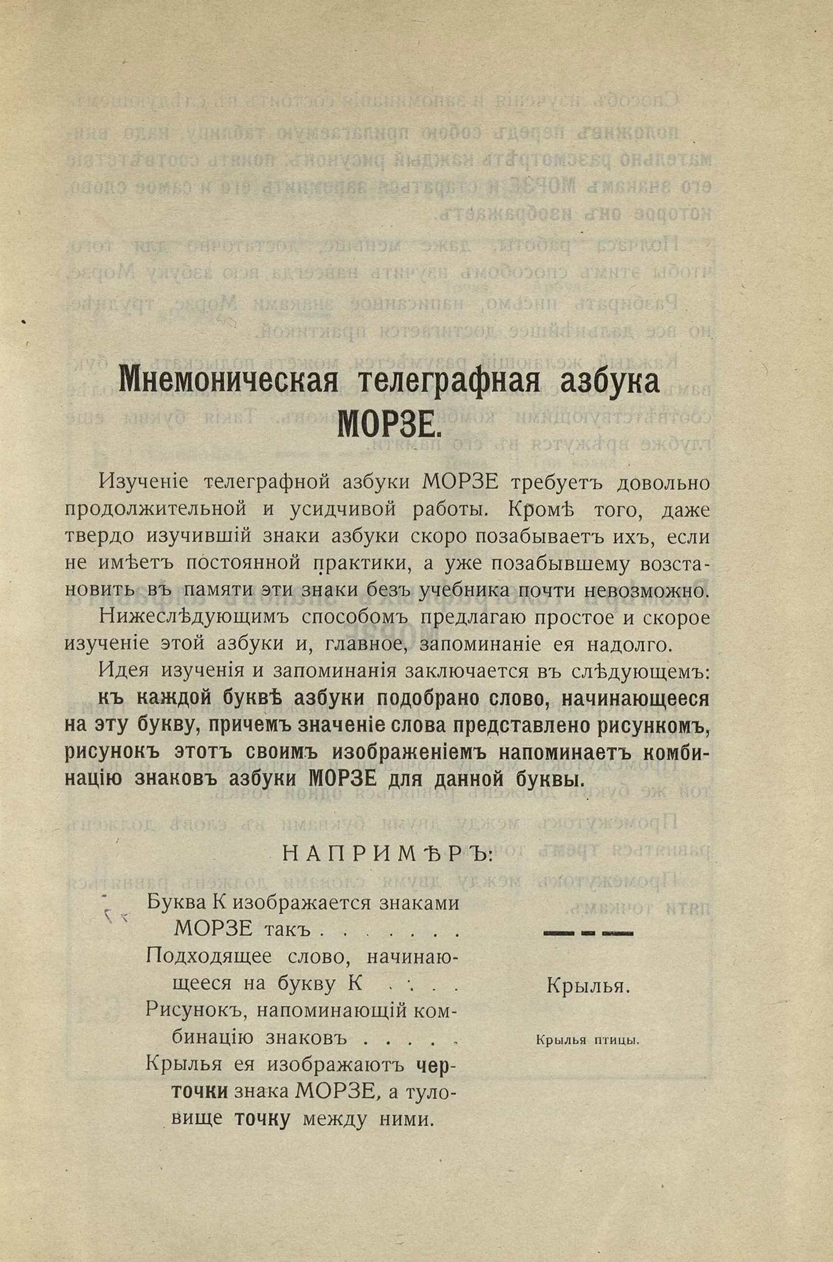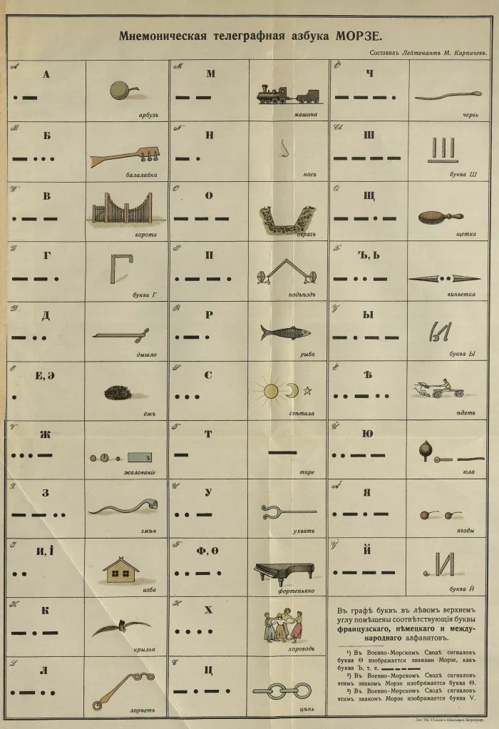 Мнемоническая телеграфная азбука Морзе 1916 года