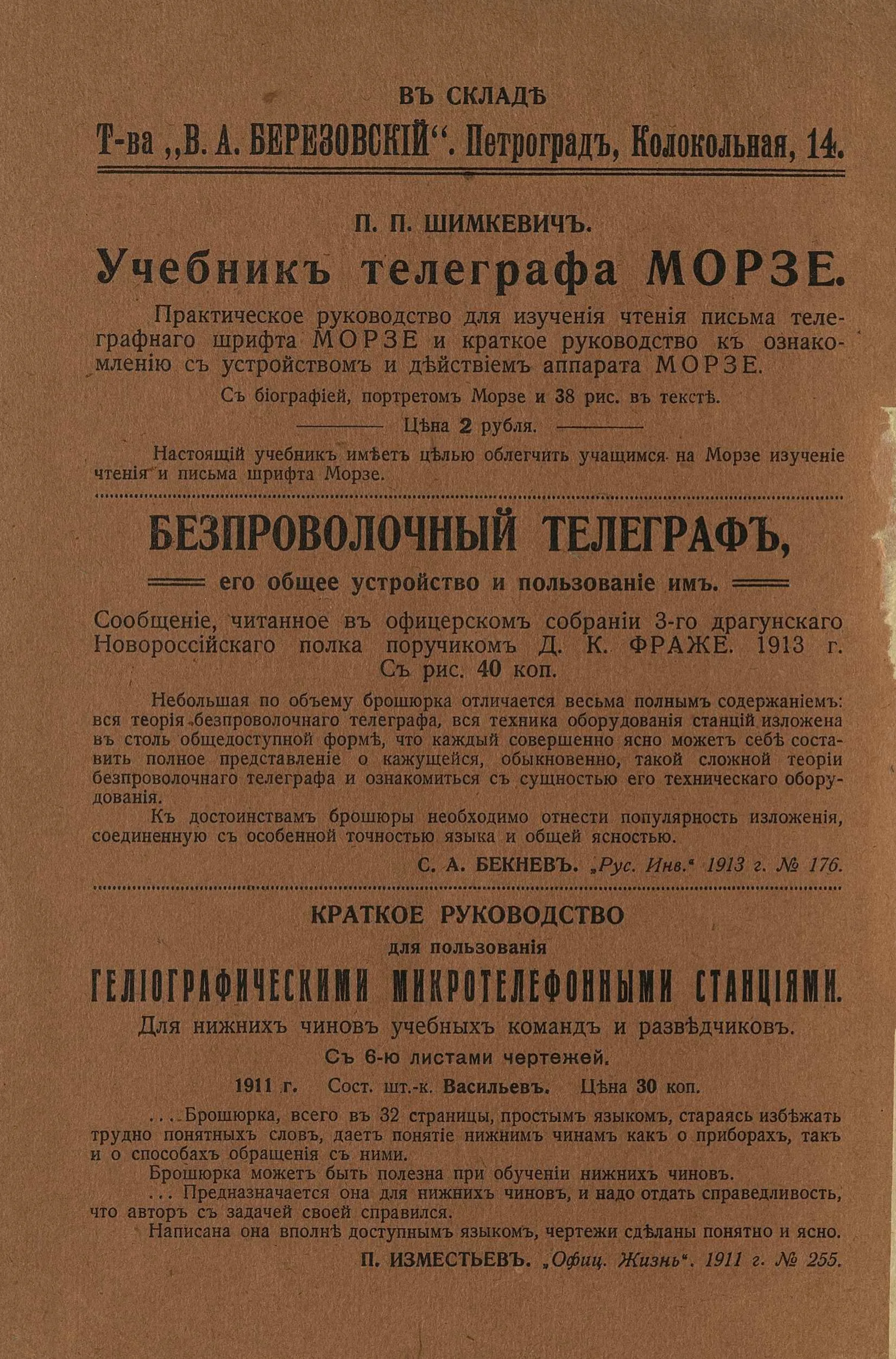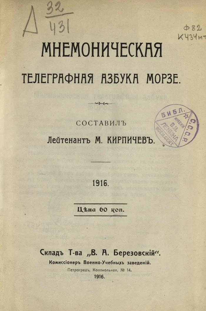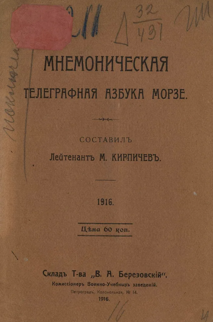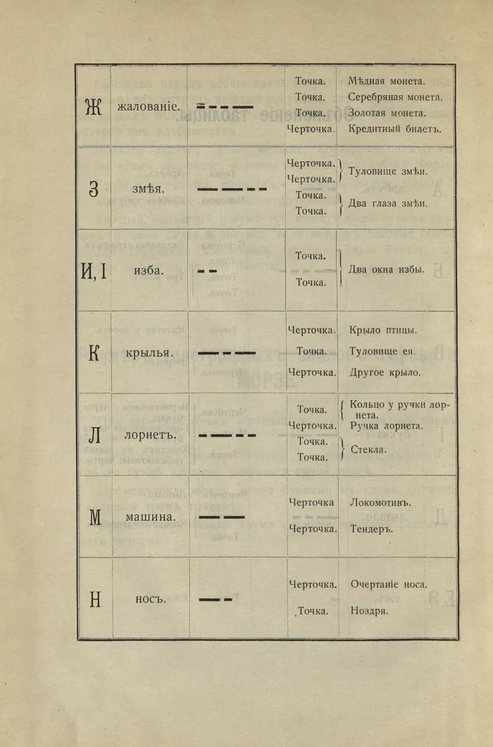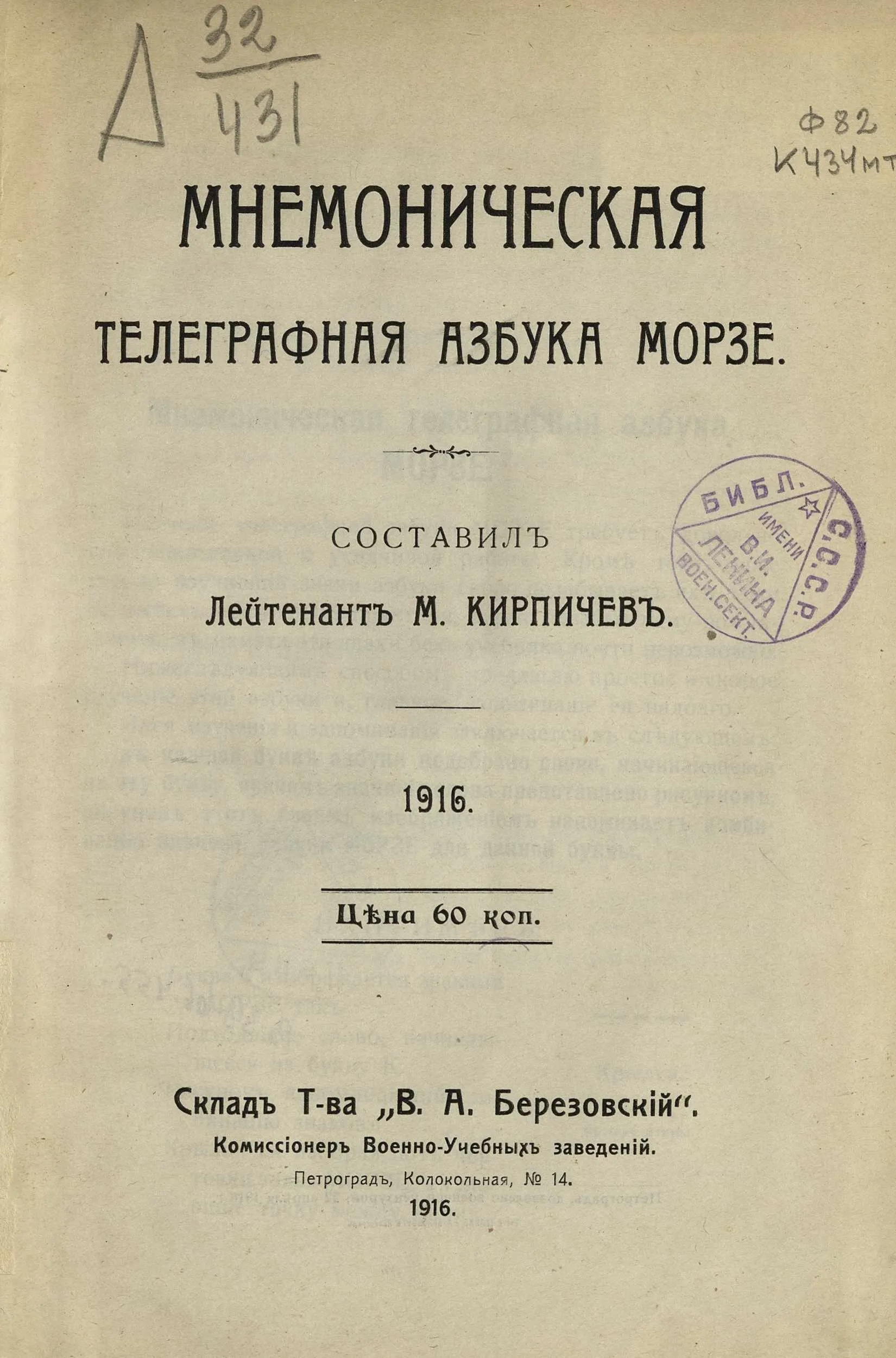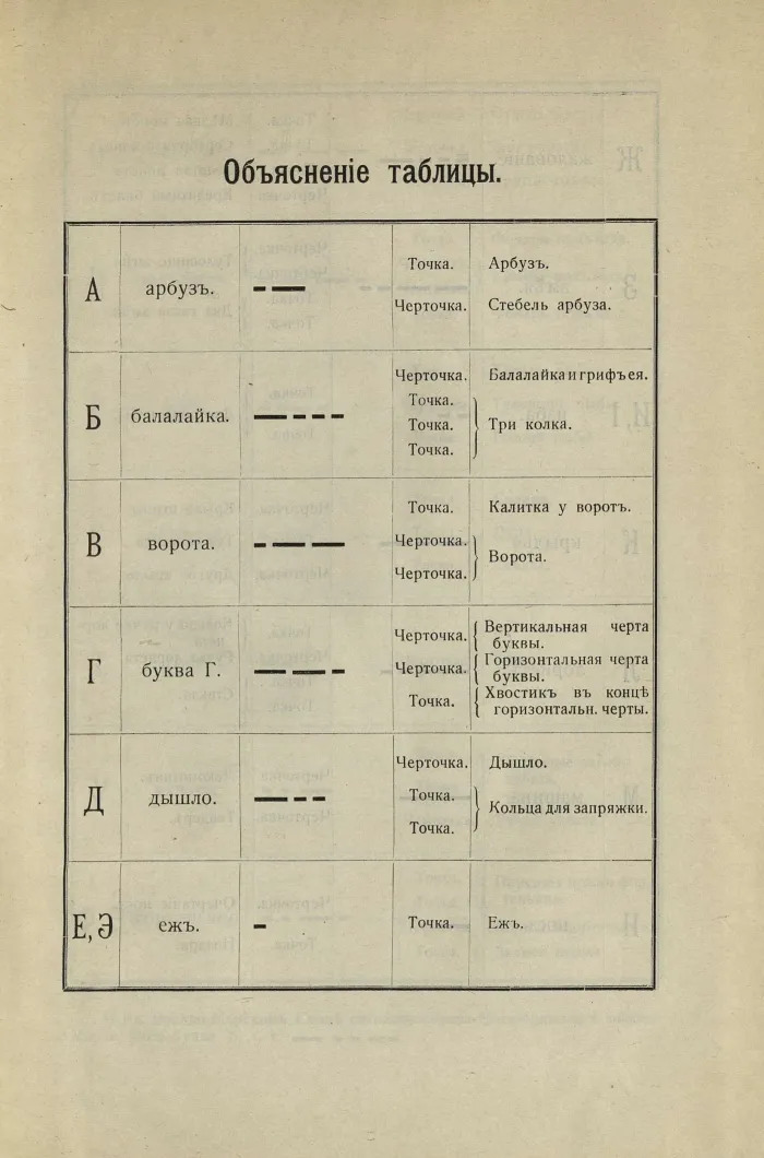 Мнемоническая телеграфная азбука Морзе 1916 года