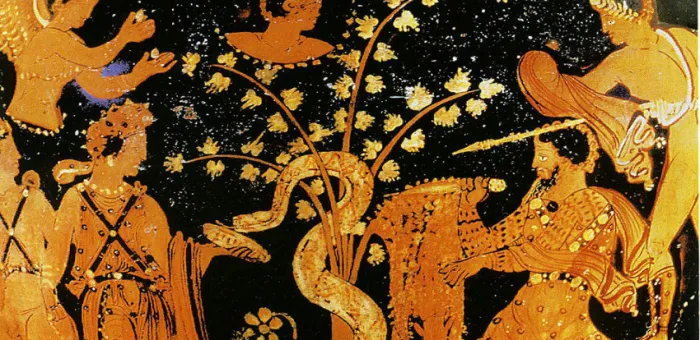 Храбрый юноша Ясон решил добыть сокровище. На корабле «Арго» он отправляется с горсткой смельчаков в далекий путь. Много приключений выпало на их долю: и землю пахал Ясон на свирепых быках, и сражался с войском, выросшим из зубов дракона, а завладеть золотым руном все не удавалось. Пришлось бы юноше возвращаться ни с чем. Но ему помогла дочь царя — волшебница Медея, и сокровище было доставлено в Грецию.