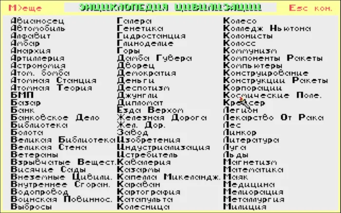Электронная Цивилопедия была вшита в саму игру и содержала всю необходимую информацию, подробно раскрывая каждый игровой аспект.