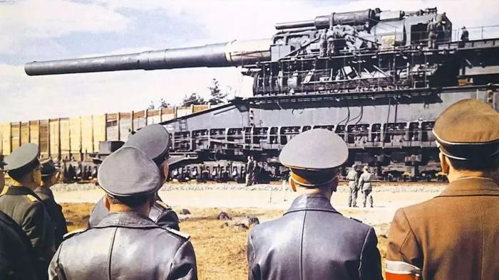 В 5 часов 35 минут 5 июня 1942 года долину близ Бахчисарая потряс громоподобный звук, который через 20 лет люди приняли бы за ядерный взрыв. На железнодорожной станции и в домах в южной части Бахчисарая вылетели стекла. Через 45 секунд огромный снаряд упал севернее станции Мекензиевы Горы. Следующие семь выстрелов были произведены по старой береговой батарее № 16 южнее поселка Любимовка. По Севастополю стреляла «Дора» калибром 807 мм. Полная длина её ствола составляла 32,5 м, а вес 400 тонн. 25 апреля 1942 года пять эшелонов с разобранной артустановкой и обслуживающим дивизионом прибыли на полустанок Ташлых-Даир. Позиция для «Доры» была выбрана в 25 км от предполагавшихся к обстрелу целей в Севастополе. Гестапо объявило весь район запретной зоной, принятые меры оказались столь успешными, что ни о прибытии в Крым, ни даже о самом существовании «Доры» советское командование так и не узнало до 1945 года. 22 апреля 1945 года, во время наступления в Баварии 3-й американской армии, передовые патрули одной из частей при прохождении через лес в 36 км севернее города Ауэрбах обнаружили в тупике железнодорожной линии 14 тяжелых платформ и разбросанные вдоль путей остатки какой-то огромной и сложной металлической конструкции. Позже в близлежащем тоннеле были найдены два гигантских артиллерийских ствола. Опрос пленных показал, что обнаруженные конструкции принадлежат сверхмощным орудиям «Дора» и «Густав». По завершении обследования остатки обеих артсистем сдали в металлолом.