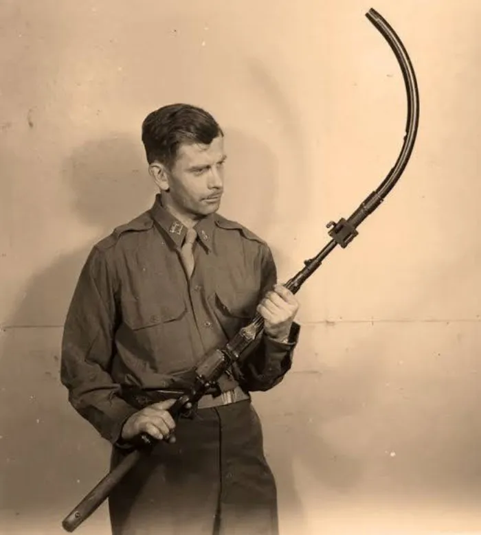Про StG 44 многие слышали. Кто не слышал - это такой немецкий автомат. Но просто автомат -это слишком банально. "А давайте его усовершенствуем" - предложили сумрачные тевтонские гении. И пошли выпить пива. И когда пиво это отливали, глядя на струю им в сумрачные головы пришла мысль сделать изогнутый ствол. так появился Krummlauf - изогнутый ствол.