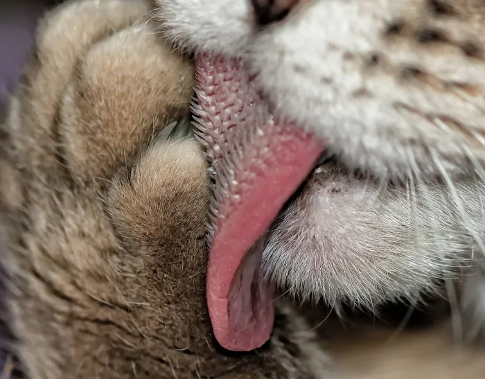 Кошачий язык похож на человеческий, за одним важным исключением. Его нитевидные сосочки стали намного длиннее и покрылись мощным слоем ороговевших (затвердевших) клеток. Благодаря такой модификации домашние мурлыки могут слизывать мясо с костей и пить воду при помощи языка. А ещё расчесываться! Язык — отличный гребешок для шерсти. Теперь понимаете, почему усатые-полосатые так много времени проводят за гигиеническими процедурами?