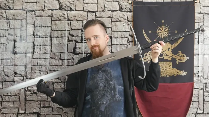Его меч в длину был больше его самого – 213 см. Весит меч около 7 кг. Это очень много! Ведь его не просто нужно носить в руках, а наносить удары. Силовой выносливости это требует колоссальной! Вес большинства двуручных мечей не превышал 2,2 кг.