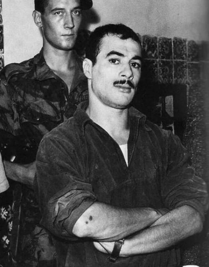 Ясеф Саади после захвата французскими парашютистами. Несмотря на все свои деяния, он избежал ответственности и даже сыграл самого себя в фильме "Битва за Алжир"