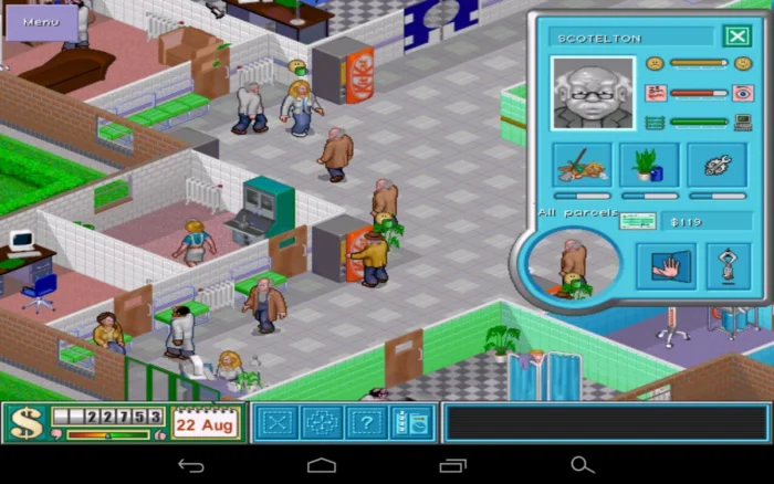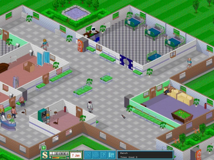 Нанят персонал - врачей различной квалификации и специализации. Практикант, доктор, консультант, хирург, психиатр и исследователь. Примерно с середины игры появится аудитория до обучения персонала и логично, что чем врач более опытен, тем большую зарплату он требует. Медсестер, секретарей, обслуживающий персонал - седых мужиков в коричневых куртках, которые поливают цветы, подметают полы и ремонтируют ценное оборудование. К примеру, зайти в хирургию, когда на операционном столе лежи пациент, чтобы постучать молотком по стойке с софитами - это в порядке нормы.