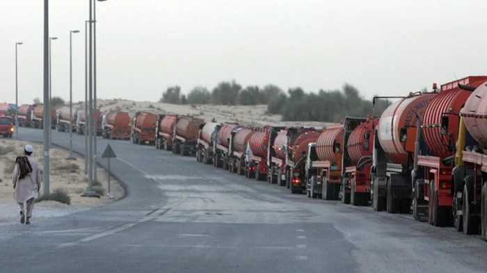 Длинная вереница машин, вывозящих содержимое туалетов...