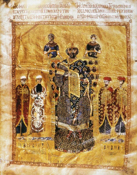 Очень наглядный пример представляет собой текст, составленный атриклином Филофеем в 899 году. Его обязанностью было организовывать императорские праздники и поддерживать правильный порядок присутствующих гостей.