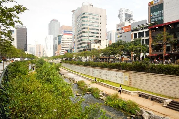 В городе шла волна подъёма, требовался какой-то свежий проект международного уровня, привлекающий внимание и заставляющий говорить о Сеуле как о современном мегаполисе. Регенерация забетонированной реки в качестве такого проекта помогла бы решить сразу ворох экологических и экономических проблем.