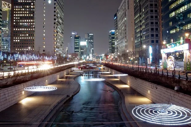 2 года длились раскопки и преобразования реки, 10 раз в год в Чхонгечхон подают воду из реки