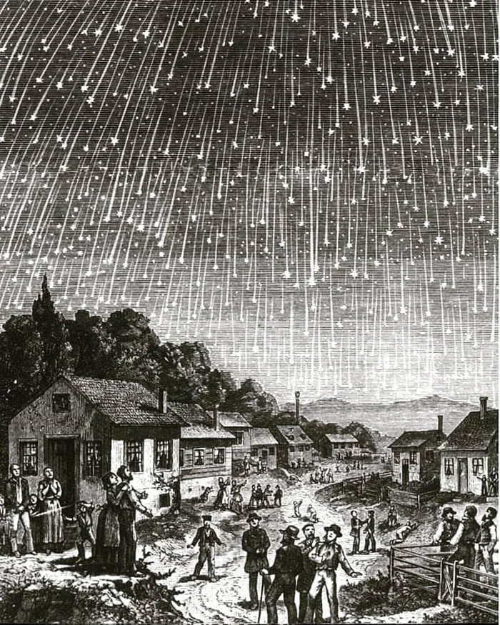 Миллионы светящихся следов, напоминающих огненные шары, покорили небеса, заставив людей того времени в испуге задуматься о наступлении Судного Дня.