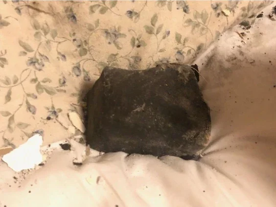 Метеорит упал к женщине прямо в постель. Однажды ночью канадка Рут Гамильтон резко вскочила от мощного треска. Нечто пробило крышу и осыпало ее щепками. Женщине крупно повезло - она чудом избежала удара метеорита, который пробил крышу ее дома и упал на подушку.