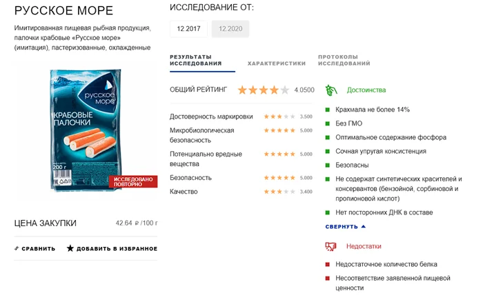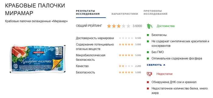 Оценка Роскачества: 4.7 (подозреваю, что это именно эти крабовые палочки, но в старом дизайне).