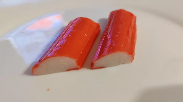 Еле заметная текстура имеется. Запах классических крабовых палочек.
