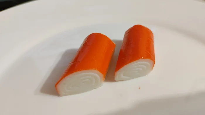 Вкусовые качества: Вкус классических крабовых палочек. Текстура чувствуется, палочки не противные. Вкус также более сладок, чем у предыдущих крабовых палочек.