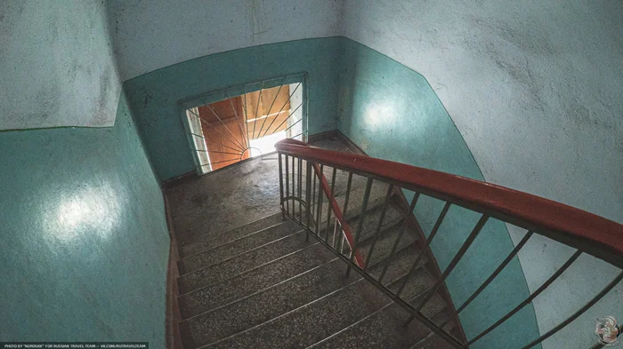Даже поднявшись с высоты ста метров чернеющие темными провалами выбитых окон дома выглядя мрачно и пугающе. Дома бросили почти 30 лет назад и атмосфера запустения, лишь множится год от года.