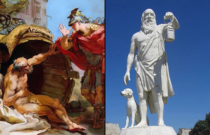 Добиваясь совершенства, Диоген вёл себя очень эпатажно: «пускал ветер», публично занимался рукоблудием. Смеялся над власть имущими, по легенде даже проигнорировал Александра Македонского, когда тот захотел стать его учеником.