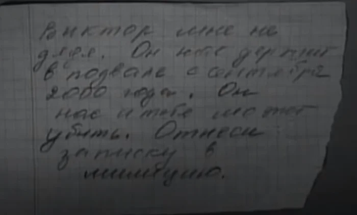"Виктор мне не дядя. Он нас держит в подвале с сентября 2000 года. Он нас и тебя может убить. Отнеси записку в милицию"